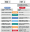 Dadurch bekommt das JSM in seinem Kern die Form eines Ypsilons (siehe Abb. 1): Die zunächst eher unabhängig agierenden Parteien (rechts und links getrennt) gehen nach dem Vertragsabschluss eine enge Partnerschaft ein – die Zeitachse der Geschäftsbeziehung verläuft im Ypsilon also von oben nach unten. Die neun angesprochenen Themen/ Aufgabenbereiche sind durch die farbigen Felder auf dem Ypsilon gekennzeichnet. Sie werden anschließend in Einzelaufgaben aufgefächert (vgl. Abb. 2), die sich aus den Notwendigkeiten des IT-Sicherheitsmanagements und der Arbeitsteilung im Kontext von Markt und industrieller IT-Produktion ergeben.